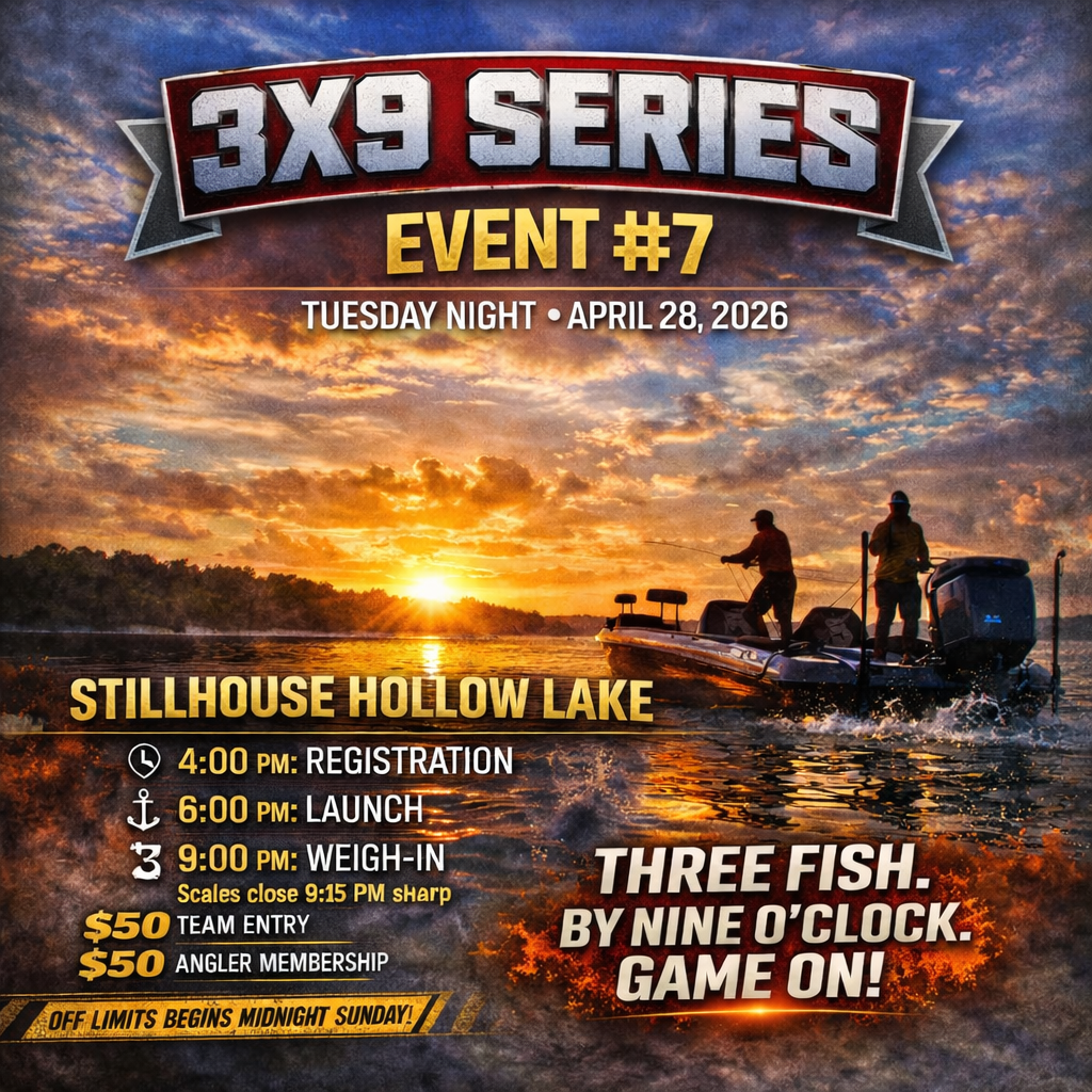 The 3X9 Series Season Opener is here and weβre kicking things off on the waters of Stillhouse Hollow Lake!